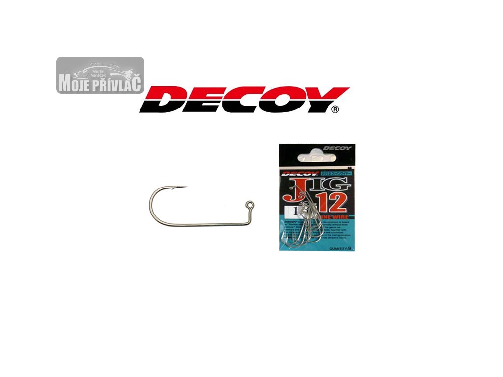 Jigové háčky Decoy Jig 12 Fine Wire s mikroprotihrotem jsou vyrobeny ze silného a pevného drátu, se kterým se při přívlači nemusíte bát žádného dravce. Jejich obloučky jsou kované. Jsou určené všem rybářům holdujícím přívlači, kteří si přidáním potřebně těžkého broku jig udělají sami, jakož i těm, kdo si jigové hlavičky sami odlévají.